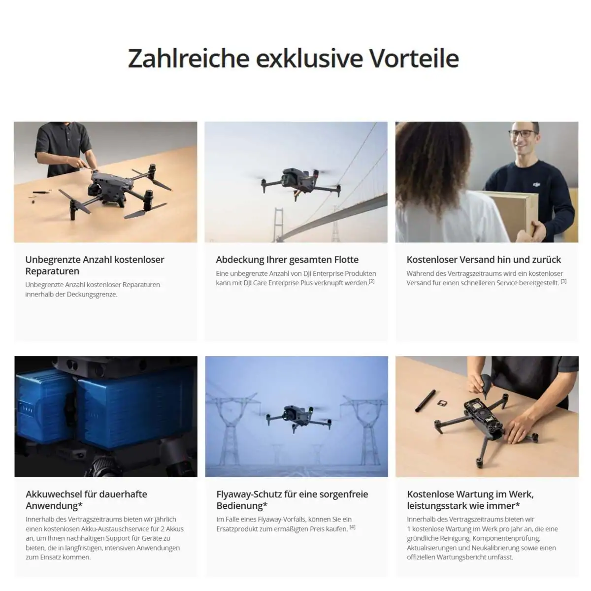 Kaufe und verlängere dein DJI Care Enterprise Basic und genieße ein weiteres Jahr mit zwei erschwinglichen Austauschgeräten um 279 €, eine offizielle Garantie und mehrere exklusive Vorteile.