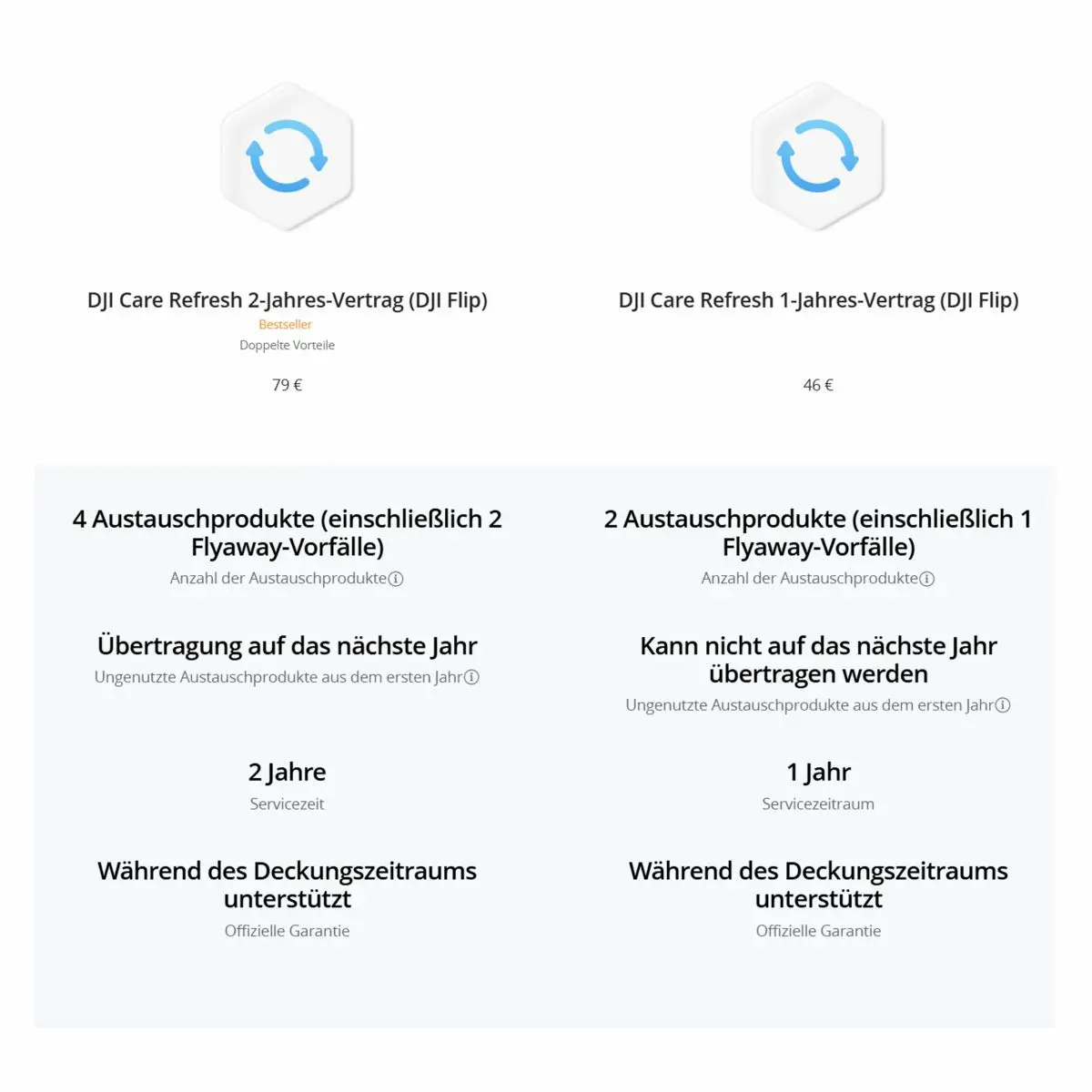 Die DJI Care Refresh Karte für 2 Jahre, kann 1 Jahr verlängert werden.