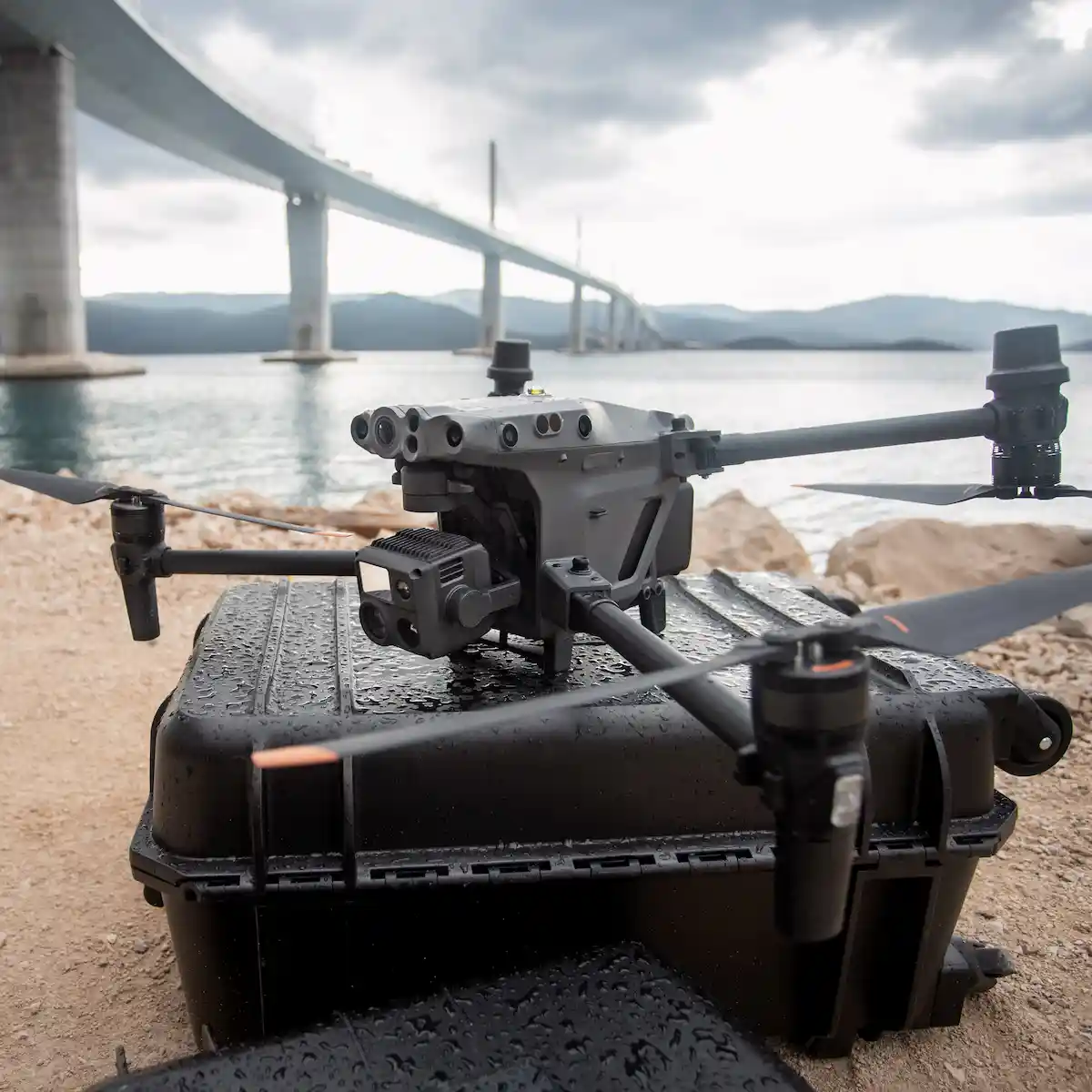 Durch das multifunktionale 3-fach Kamerasystem, dem Laserentfernungsmesser und den optionalen Anbaumodulen, ist die DJI Matrice M30T Drohne universell in den verschiedensten kommerziellen Bereichen einsetzbar und meister selbst widrigste Einsatzbedingungen.