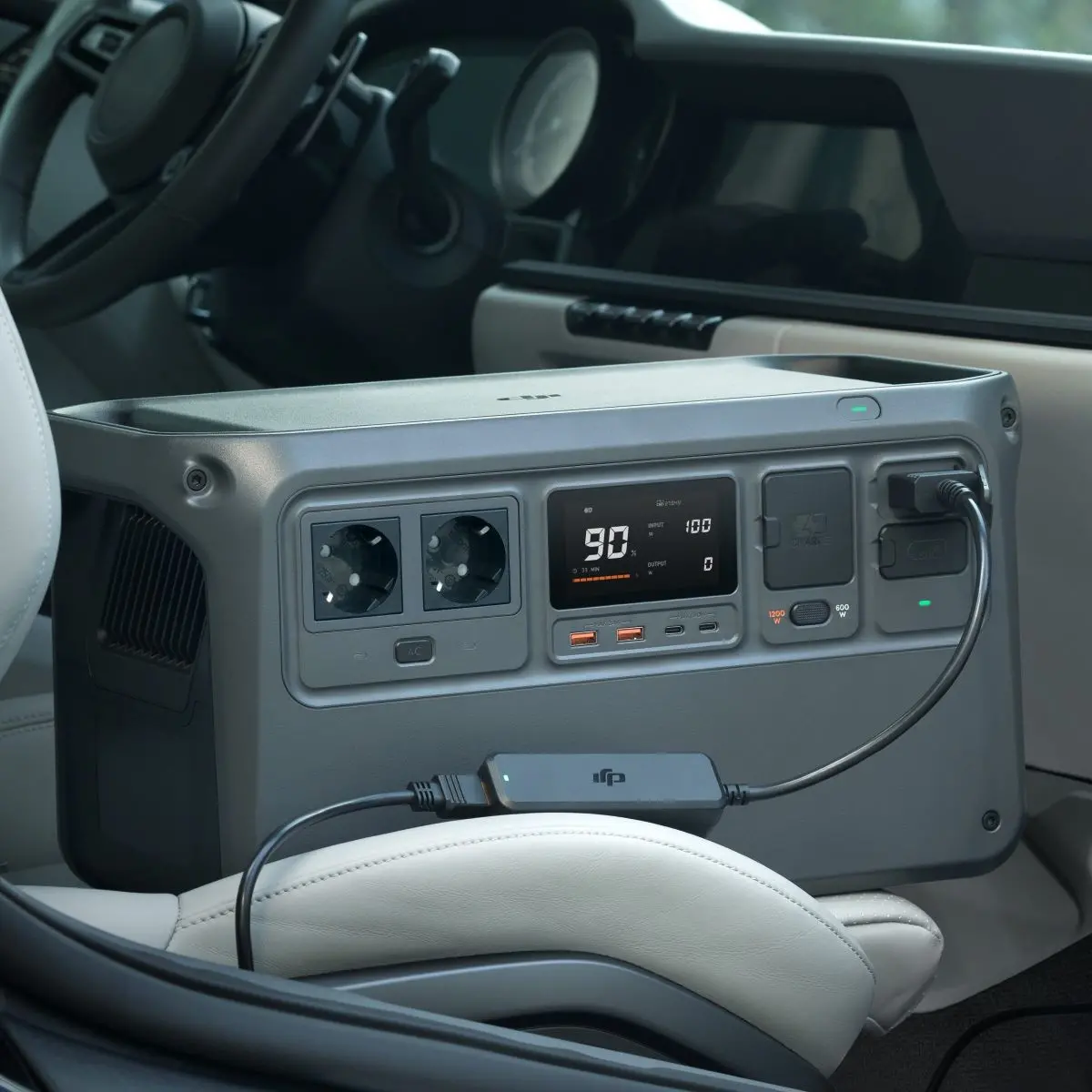 Lade Sie Ihre DJI Power Ladestation auch unterwegs mit Ihrer 12 oder 24V Autosteckdose auf.