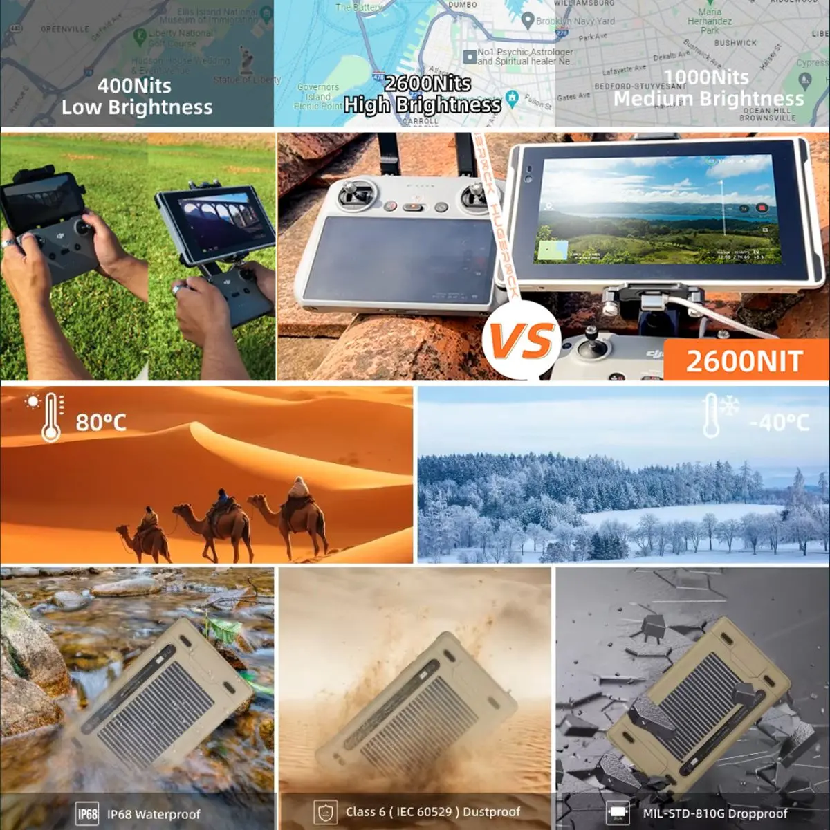 Mit ultrahellem 2.600 nits FullHD Display und robustem Gehäuse eignen sich die Tablets der X7-Serie perfekt für Outdoor-Sportarten, Motorradfahren, Drohnensteuerung, Angeln, Kamerafeldmonitor, Feldüberwachung, Feldarbeit, Fotografie, usw.